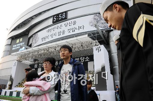 [아시아경제 이재문 기자] 25일 천안함 침몰사고의 희생 장병 합동분향소가 설치된 서울광장에 많은 시민들이 찾아 고인들을 추모하고 있다.