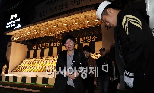 [아시아경제 이재문 기자] 25일 저녁 천안함 침몰사고의 희생 장병 합동분향소가 설치된 서울광장에 한 시민이 고인들 추모를 마치고 나오며 눈물을 흘리고 있다.