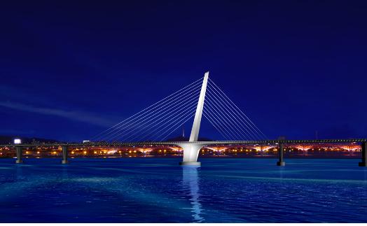 총사업비 3600억원이 투입되는 월드컵대교는 한강 최초의 비대칭 복합 사장교로 주탑의 높이는 100m, 경사각은 78도다. 또 아라뱃길(경인운하)을 통과하는 5000t급 크루즈가 운항할 수 있도록 경간장이 한강교량 중 가장 넓은 225m에 달한다.