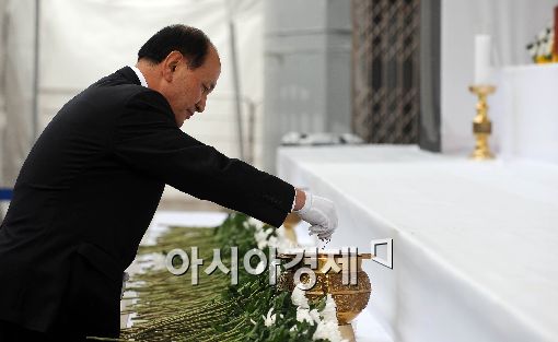 [아시아경제 이재문 기자] 남용 LG전자 부회장과 그룹 임원들이 27일 오전 서울광장에 설치된 천안함 침몰사고의 희생 장병 합동분향소에서 조문을 하고 있다.