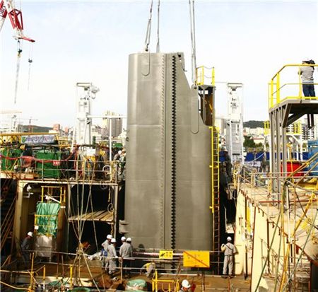 기존 드릴십 건조과정에서는 쓰러스터를 선박에 탑재하기 위해 별도의 시설투자를 단행해야 했지만 현대중공업이 성공한 육상탑재공법은 일반 선박을 건조하는 기존 도크를 그대로 활용할 수 있어 건조비용을 그만큼 줄일 수 있는 것이다.