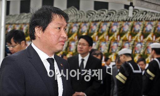 [아시아경제 이재문 기자] 최태원 SK그룹 회장과 임직원들이 27일 오전 서울광장에 설치된 천안함 침몰사고의 희생 장병 합동분향소에서 조문을 하고 있다.