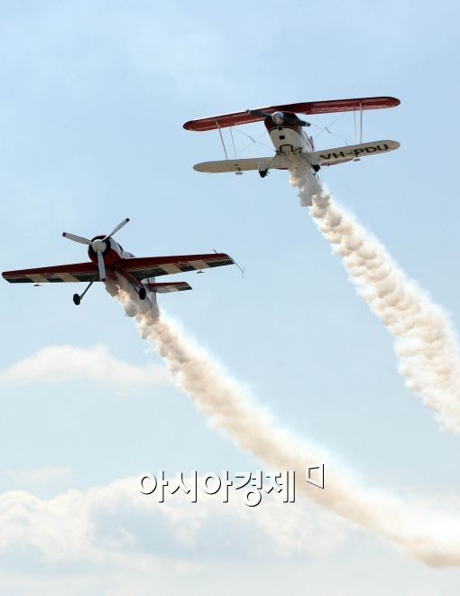 [아시아경제 이재문 기자] 30일 오전 경기도 안산시 상록구에서 열린 ‘2010 경기국제항공전’에서 경비행기들이 곡예비행을 펼치고 있다.