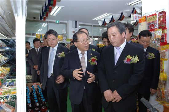 이날 나들가게 200호점 개점식에 참석한 김동선 중소기업청장은 가게에서 기획상품으로 출시된 휴지와 라면 1상자를 직접 구매하며 앞으로의 발전을 기원했다.