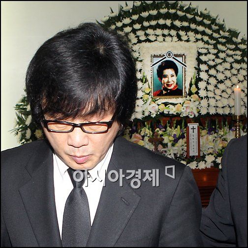 [아시아경제 박성기 기자]5일 오후 서울 풍납동 서울아산병원 장례식장에 마련된 원로가수 故 백설희(본명 김희숙)의 빈소에서 아들 전영록이 침통한 표정을 짓고 있다.