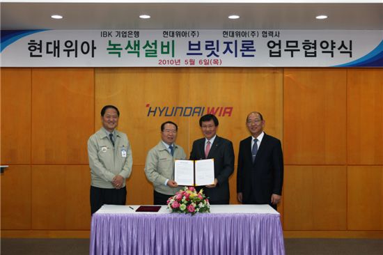 현대위아는 6일 경남 창원 본사에서 임흥수 사장, 이형하 구매본부장(부사장)과 정충현 기업은행 부행장이 참석한 가운데 ‘녹색설비 브릿지론 업무협약’을 체결했다고 밝혔다. 이날 협약식에는 현대위아의 협력업체 대표자 30여명도 함께 자리했다.