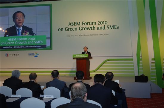 아시아-유럽간 협의체인 아셈(ASEM) 회원국들이 참여하는 '2010 녹색성장과 중소기업 포럼'이 6일 서울 삼성동 코엑스 그랜드볼룸에서 대단원의 막을 올렸다.