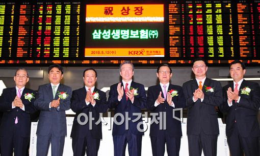 [아시아경제 윤동주 기자] 12일 서울 여의도 한국거래소에서 삼성생명보험 유가증권 시장 신규 상장식이 열렸다.