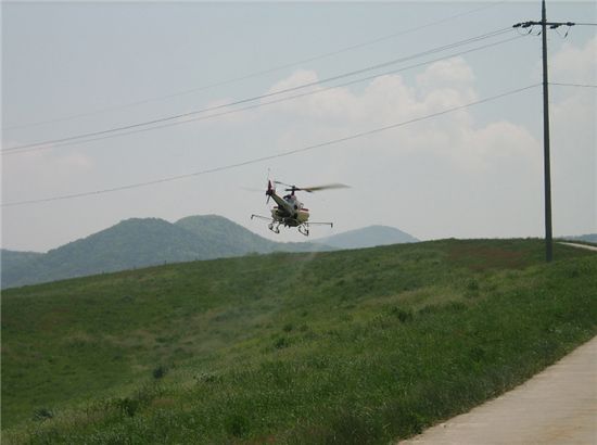 [아시아경제 왕성상 기자] 구제역을 무인헬기로 방역한다.