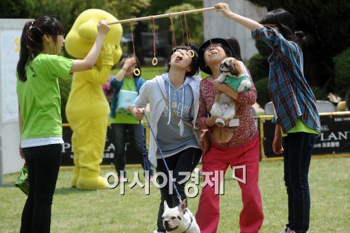 [아시아경제 이재문 기자] 13일 오후 서울 건국대학교 캠퍼스에서 열린 애견한마당에 참석한 참가자들이 애견과 함께 즐거운 시간을 보내고 있다.