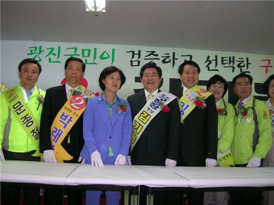 박 최고위원은 또 "김기동 후보만한 후보 찾기 쉽지 않다"면서 "김기동 구청장이 운영하는 광진구는 대한민국 으뜸 가는 기초단체가 될 것"이라고 김기동 후보에 지지를 당부했다.