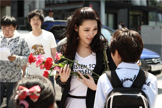 지난 5월 초 서울의 한 거리에서 진행된 촬영에서 박시연은 비록 연기였지만 실제 장미꽃을 선물 받고는 실제로 연신 웃음을 지으며 즐거워했다.