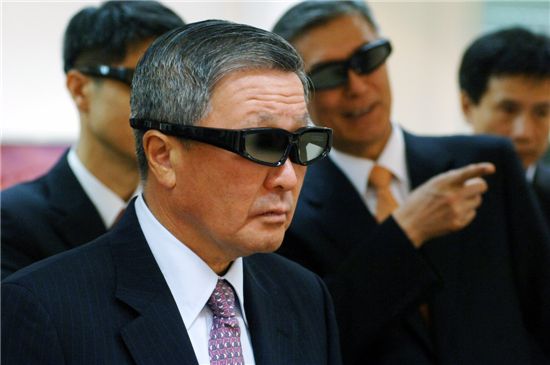[아시아경제 이윤재 기자] 18일 서울 양재동 LG 디자인 경영센터에서 구본무 LG 회장이 LG전자가 개발한 3D TV용 안경을 쓰고, 3D TV 디자인을 살피고 있다. 이날 LG는 디자인경영센터에서 구 회장을 비롯한 최고경영진과 디자인부문 최고책임자 20여명이 참석한 가운데 '디자인 경영간담회'를 개최했다.