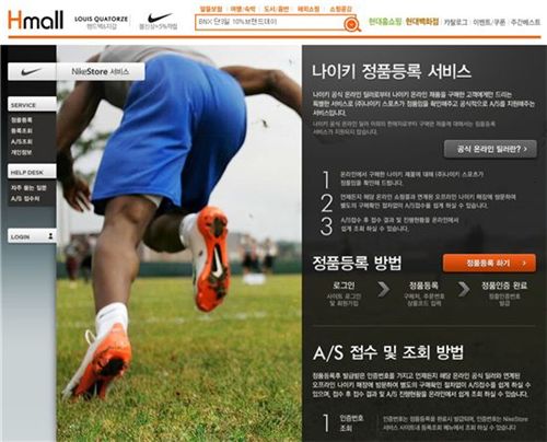 현대홈쇼핑이 운영하는 현대H몰은 지난해 업계 최초로 오픈한 나이키 전문 온라인몰에서 정품인증 서비스를 실시한다. 이곳에서 구매한 제품을 정품으로 등록하면 오프라인 매장(현대백화점 나이키 매장)에서 A/S를 받을 수 있게 한 서비스다. H몰측은 "고객들이 직접 정품여부를 확인하고 관리도 보다 쉽게 할 수 있게 됐다"고 설명했다. H몰은 나이키코리아가 지정한 공식 온라인딜러다. H몰만 나이키 정품을 판매하는 건 아니지만, H몰의 상품은 정품이라는 말이다.