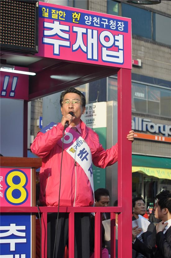 [아시아경제 박종일 기자]추재엽 무소속 양천구청장 후보가 20일 오후 5시 30분 양천구 신정네거리에서 출정식을 갖고 3선 도전에 따른 본격 행보에 나섰다.