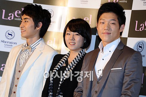 [아시아경제 이기범 기자]스케이트 선수 이승훈(왼쪽부터), 이상화, 모태범이 22일 오후 서울 광장동 워커힐 호텔에서 열린 배우 이범수의 결혼식에 참석해 포즈를 취하고 있다.