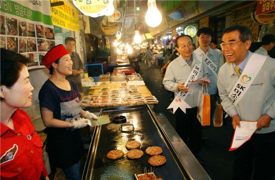 신헌철 SK에너지 부회장과 SK미소금융재단은 24일 경기도 광명시 재래시장인 광명시장을 직접 방문해 SK미소금융재단의 상품을 소개하고 출장 상담을 통해 재래시장 상인의 필요와 수고에 귀 기울이는 시간을 가졌다.