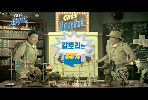 지난 22일부터 방영된 '카스라이트' 광고에서 가수 싸이는 '라이트 형제'로 분해 1인 2역의 연기를 펼쳤다. '라이트 형제'가 인간이 날 수 있는 비행기를 발명했다면 '카스 라이트'의 '라이트 형제'는 '라이트 맥주'를 개발한다는 내용으로, '맛'과 '칼로리' 제품의 두 가지 특징을 위트있고 유머러스하게 표현했다.
