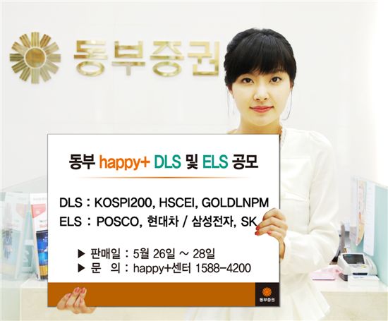 [아시아경제 박선미 기자]동부증권은 26일부터 28일까지 원금보장형 ‘동부 happy+ 파생결합증권(DLS) 제12회’와 스텝다운형 ‘동부 happy+ 파생결합증권(ELS) 제271회, 제272회’를 판매한다.