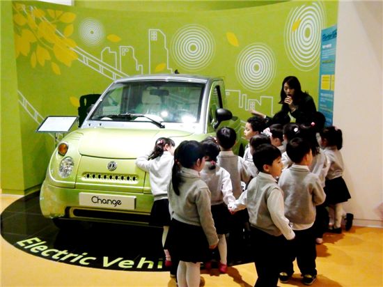 '체인지'는 녹색교통 섹션에 수소연료전지 자동차, 에코 드라이빙 체험 공간과 함께 전시돼 친환경 자동차의 에너지 효율성과 녹색성장의 필요성에 대한 이해를 돕고 있다.