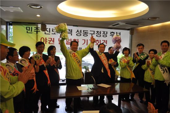 고 후보는 이날 오전 10시 성동구청 맞은 편 비전호텔에서 민주노동당 최창준 후보와 후보 단일화를 선언하는 기자회견을 갖고 이같이 밝혔다.