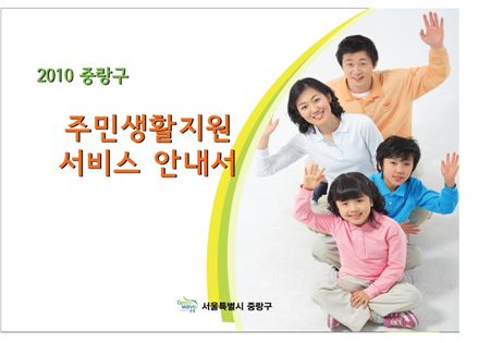 주민생활지원서비스 안내서는 총 138쪽 분량으로 중랑구와 사회복지시설, 중랑문화원, 청소년시설 등에서 시행하고 있는 주민생활지원서비스 프로그램을 복지 보건 고용 주거 교육 문화 체육 등 7개 분야, 26개 서비스사업으로 분류했으며 1038개의 서비스내용을 수록하고 있어 주민들의 서비스 이용 편의를 제공토록 했다.