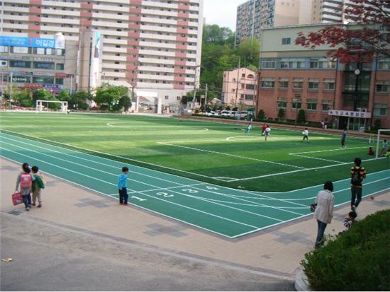 학교 운동장은 인조잔디 육상트랙 우레탄농구장 등으로 꾸며지며 특히 인조잔디는 친환경적이고 인체에 무해한 제품으로 시공할 계획이다.