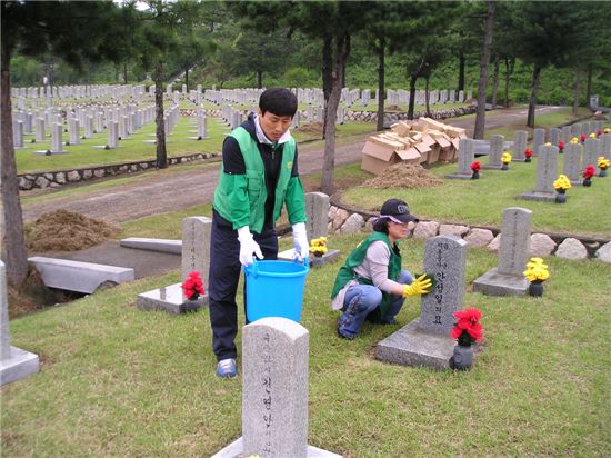 또 정성들여 묘지주변의 잡초를 제거하고 묘비를 세척하는 등 순국선열들이 묻힌 현충원을 정리하는 봉사활동도 펼쳤다.