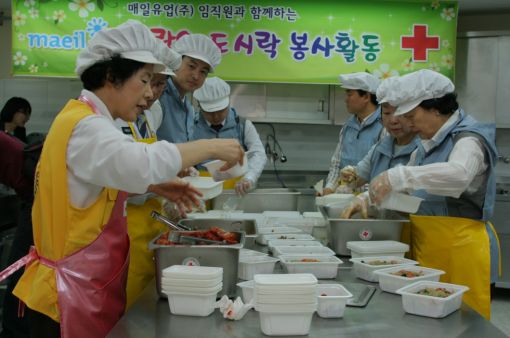 '사랑의 도시락'은 매일유업이 대한적십자사와 함께 진행하는 연중 사회공헌 캠페인이다. 이날 매일유업 임직원과 적십자봉사원 50여명은 인근 소외계층 및 독거노인을 방문해 직접 만든 사랑의 도시락을 전달했다.