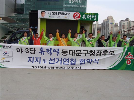 유덕열 후보가 한나라당 방태원 후보와 박빙의 선거전을 벌여왔지만 유덕열 후보를 명실상부한 야3당의 단일후보로 확정한 이날 협약식을 계기로 유 후보는 동대문구청장 선거에서 유리한 고지를 선점하게 될 전망이다.