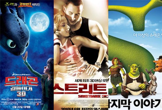 지난 20일 개봉해 국내 박스오피스 1위를 차지한 '드래곤 길들이기'를 시작으로 세계 최초 3D 댄싱로맨스 '스트리트 댄스' 그리고 '슈렉 포에버'가 그 주인공이다.