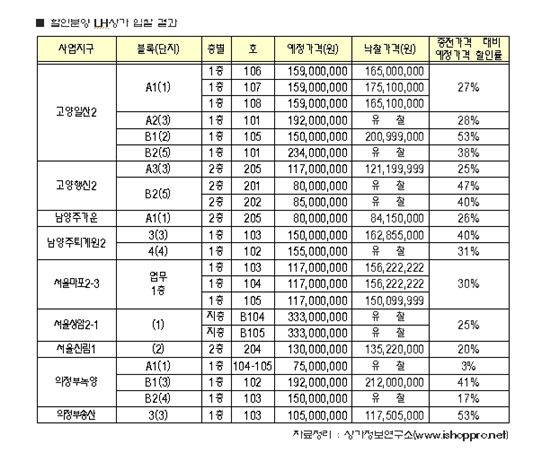 한국토지주택공사(LH)는 최근 단지내 상가를 할인해 입찰에 붙였다. 결과는 절반의 성공.