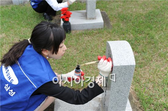 삼성탈레스는 1일 "현충원과 지난해 6월 자매결연을 맺고 무연고 묘소를 대상으로 묘비 닦기, 잡초뽑기, 조화교체, 흐려진 비문 되쓰기 등의 묘역 가꾸기 봉사활동을 전개했다"고 밝혔다.