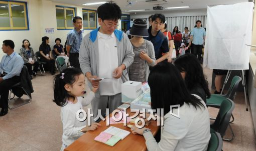 [아시아경제 이재문 기자]6.2 지방선거 투표일인 2일 오전 서울 성산동 제9투표소인 중암중학교를 찾은 시민들이 줄을 길게 늘어서고 있다.