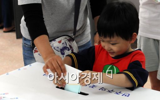 [아시아경제 이재문 기자]6.2 지방선거 투표일인 2일 오전 서울 성산동 제9투표소인 중암중학교를 찾은 시민들이 소중한 한 표를 행사하고 있다.