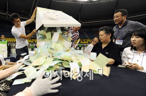 [아시아경제 이재문 기자]6.2 지방선거가 종료된 2일 오후 서울 송파구 올림픽공원 체조경기장에 마련된 송파구 개표소에서 6.2지방선거 개표가 진행되고 있다.