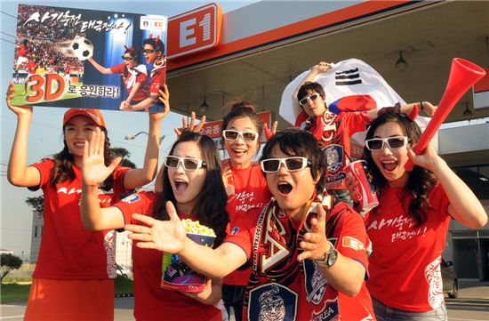 E1은 ▲서울 왕십리점 ▲일산점 ▲부산 대연점 ▲광주의 광주터미널점 ▲대구점 ▲대전점 등 전국 6개 도시 CGV에서 총 1327명을 초대해 3D 월드컵 응원전을 마련하고 E1 응원 티셔츠 및 CGV 콤보세트 등을 제공한다. 또한 치어리더와 함께 응원전을, 하프타임 때는 현장 경품 이벤트를 진행한다.