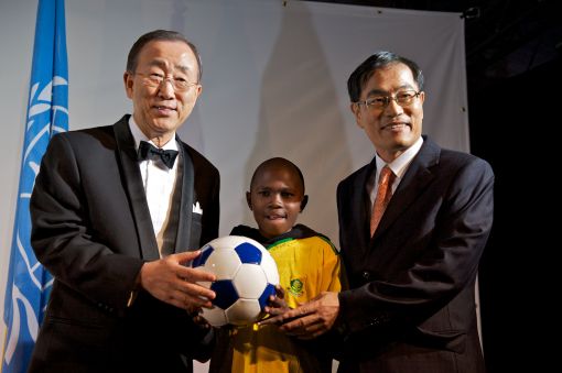 현대차는 8일 오후(현지시간) 남아공 요하네스버그 소재 컨스티튜션 힐에서 열린 'UN 스포츠 포 피스 2010(UN Sports for Peace Gala 2010)' 행사에서 드림볼 1호 공 기증식을 가졌다고 밝혔다.