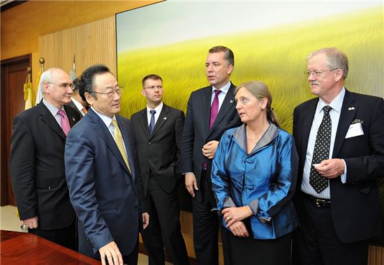 [아시아경제 김혜원 기자] 사공일 무역협회 회장은 지난 9일 삼성동 트레이드타워에서 방한 중인 EU 의회 대표단을 만나 부산 G20 재무장관 회의 성과와 G20 서울 정상회의 준비 상황을 설명하고 한-EU FTA 체결에 대해 의견을 교환했다.