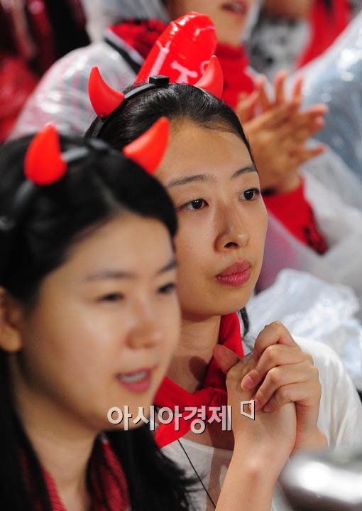 [아시아경제 윤동주 기자] 12일 오후 2010 남아공 월드컵 조별 예선 첫 경기 그리스전을 승리로 장식한 가운데 서울 상암동 월드컵 경기장에서 응원을 하던 시민들이 함성을 지르며 기쁨을 나누고 있다.