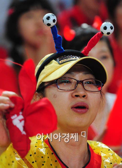 [아시아경제 윤동주 기자] 12일 오후 2010 남아공 월드컵 조별 예선 첫 경기 그리스전을 승리로 장식한 가운데 서울 상암동 월드컵 경기장에서 응원을 하던 시민들이 함성을 지르며 기쁨을 나누고 있다.