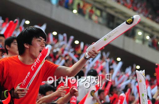 [아시아경제 윤동주 기자] 12일 오후 2010 남아공 월드컵 조별 예선 첫 경기 그리스전을 승리로 장식한 가운데 서울 상암동 월드컵 경기장에서 응원을 하던 시민들이 함성을 지르며 기쁨을 나누고 있다.