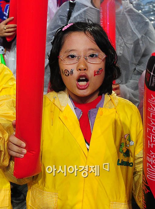 [아시아경제 윤동주 기자] 12일 오후 2010 남아공 월드컵 조별 예선 첫 경기 그리스전을 승리로 장식한 가운데 서울 상암동 월드컵 경기장에서 응원을 하던 시민들이 함성을 지르며 기쁨을 나누고 있다.