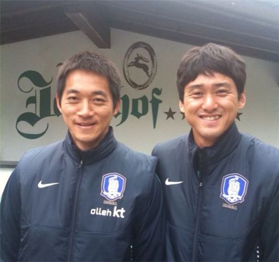 남편은 어제 경기 후에도 내 전화를 받자마자 "우리 잘생긴 정수가 골을 넣었다"며 껄껄 웃었다. 아들 서우 사진만 받아보던 남편이 며칠 전 자기도 사진을 보내주겠다며 남아공에서 정수 씨와 같이 활짝 웃는 사진을 보냈다.<사진> 그 사진을 보고 기분이 너무 좋아졌는데 골까지 넣어 얼마나 고마운 지 모르겠다.