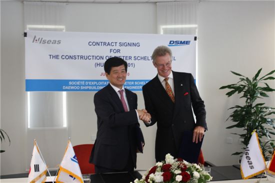 남상태 대우조선해양 사장은 최근 네덜란드 델프트에서 에드워드 히레마 올씨 회장과 약 6억달러 상당의 초대형 해양플랜트 설치선 1척에 대한 건조 계약을 체결했다.