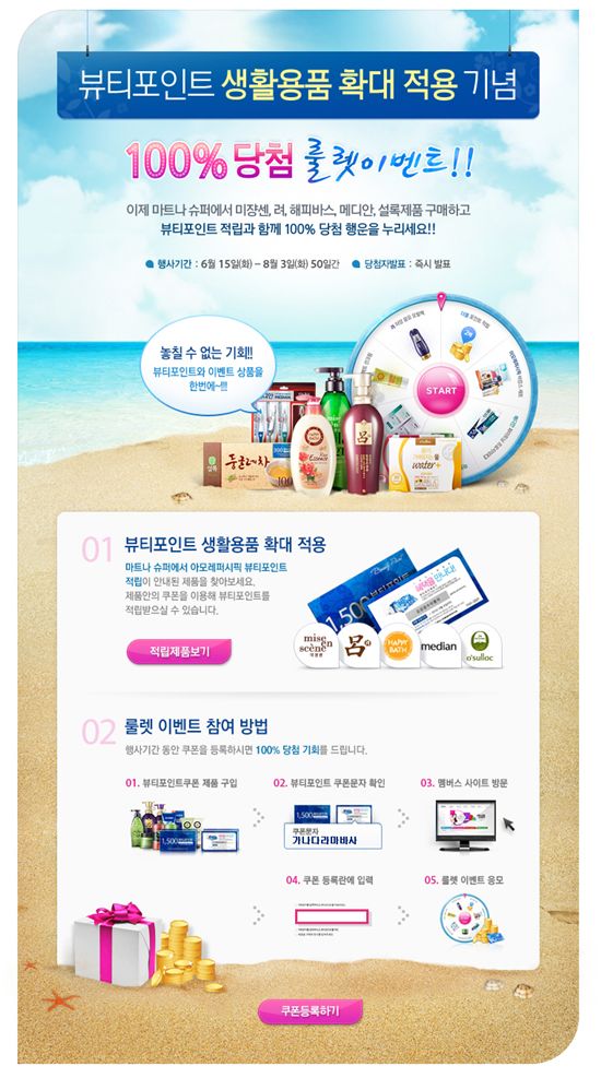 이번 확대 실시를 기념해 오는 8월 3일까지 적립대상 제품을 구매하고 쿠폰을 등록한 모든 고객을 대상으로 생활용품 증정이나 더블 포인트 적립 행사를 진행한다.