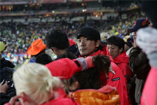 남아공 현지에서 촬영을 계속하고 있는 '태극기 휘날리며'팀은 16일 오전 3시 30분(한국시간) 요하네스버스 엘리스파크에서 열린 이 경기를 찾았다.
