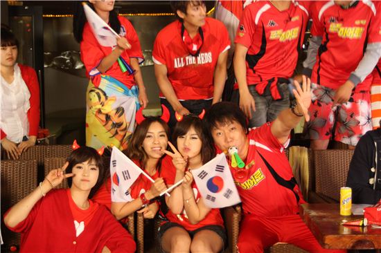 이들은 이날 고사의 제작사 및 티아라, 황정음, 씨야의 소속사인 코어콘텐츠미디어 앞마당에 300인치 스크린을 설치하고 붉은 악마로 변신할 예정이다.