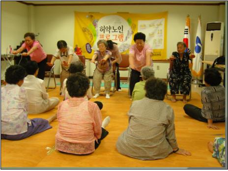 허약노인 예방프로그램 참가자 박정례 씨(68)는 “무료로 노인전문 건강교육을 배울 수 있어 너무 좋다”며 “할 일없이 집에만 있다가 사람들과 얘기도 하고 운동도 하니 젊어지는 것 같다”며 매우 만족해했다.