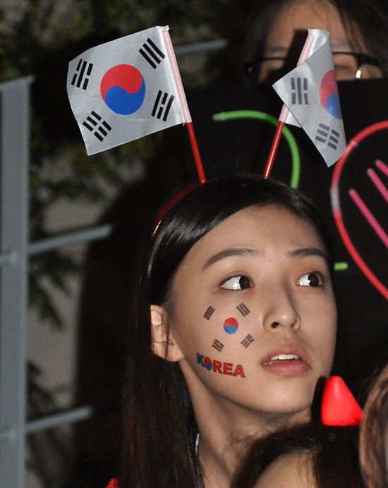 지난 17일 코어콘텐츠미디어 사옥에는 '2010 남아공 월드컵' 한국 대 아르헨티나 경기 응원전을 위해 가수 티아라, 홍진영, 블랙펄, 다비치, 배우 김수로, 고사멤버들이 모였다.